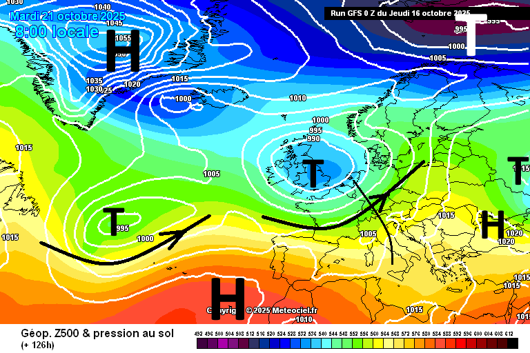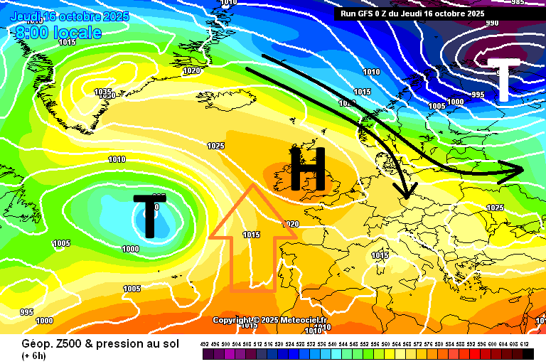 Exemplarisch die Geopotential-/Druckstruktur für heute Do vom aktuellen GFS-Modelllauf: