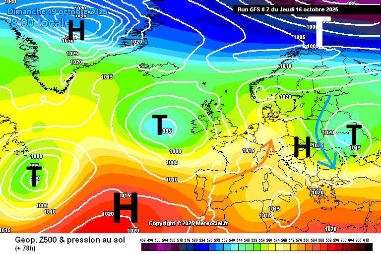 An dieser Konstellation und am Wettercharakter in den Ostalpen ändert sich in den nächsten Tagen wenig, allerdings verlagert sich die gesamte Omegastruktur bis zum Wochenende nach O. Am So liegt das Hoch knapp östl. der Ostalpen, die bei abnehmenden Hochdruckeinfluss zunehmend in eine deutlich mildere SW-liche Strömung mit Föhn an der Alpennordseite gelangen. Die Sonne sollte sich nach Nebelauflösung auch in den Niederungen durchsetzen. Hohe Wolkenfelder im äußersten W sind ein untrügliches Zeichen der bevorstehenden Wetterumstellung: