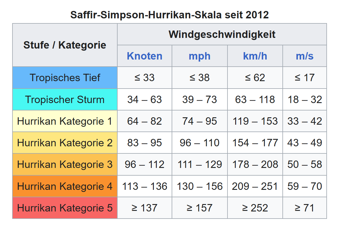 Stufe fünf ist verbunden mit Windgeschwindigkeiten von über 252 Kilometern pro Stunde.