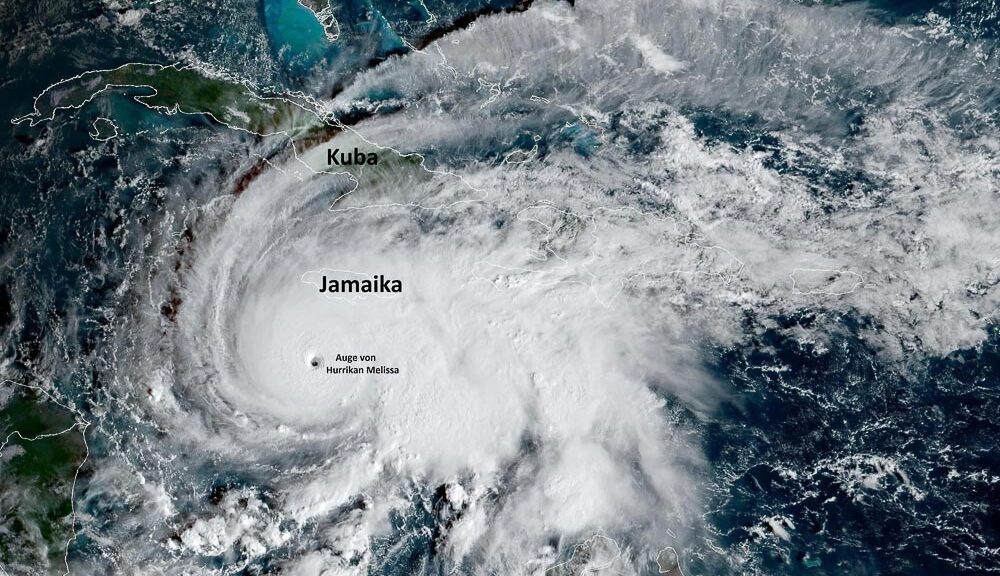 Entscheidend für seine Zerstörungskraft ist einerseits die Orkanstärke, aber auch die Tatsache, dass der Hurrikan MELISSA mit vier bis sieben Kilometern pro Stunde in der Karibik verhältnismässig langsam unterwegs war. Das heißt, der Wirbelsturm kann am gleichen Ort über einen längeren Zeitraum hinweg toben Dabei kommt es zusätzlich zu extremen NS-Summen, da das Meerwasser der Karibik mit 30°C überdurchschnittlich warm ist.  Lokal sind bis zu 1000mm/m2 gefallen.  Das ist so viel oder mehr als an meiner Messstation in Thenneberg in einem ganzen Jahr fällt. Die Folgen sind verheerende Sturzfluten und Erdrutsche.
