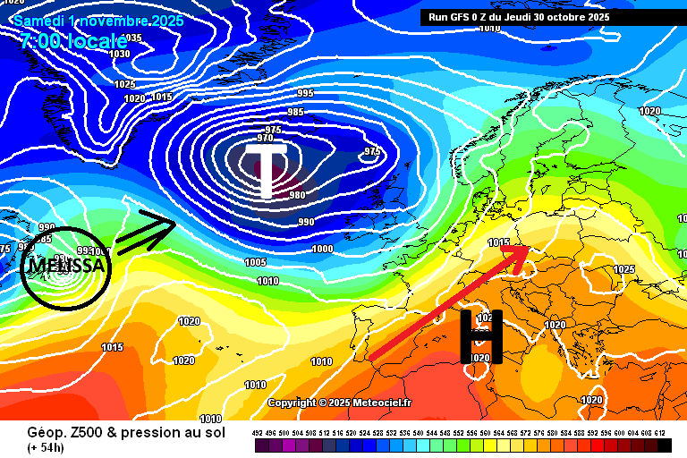 Über dem NA vereinigt sich Ex-MELISSA mit dem dortigem atlantischem Zentraltief und wird mit seinem Energieeintrag dieses kräftigen: