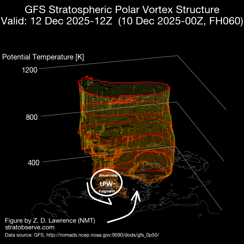 Solange sich das Zirkulationsmuster, dass sich nach der sPW-Störung (stratosphärischer Polarwirbel) im November mit der Platzierung des steuernden tPW-Fragments troposphärischer Polarwirbel) über der kanadischen Arktis ausgebildet hat, nicht grundlegend ändert, kann/wird sich über dem europäischen Kontinent kein winterlicher Wetterabschnitt einstellen. Mit dem herrschenden „arctic outbreak/Polarexpress“ gelangt arktische Kaltluft nach Kanada und in den NO der USA und erreicht in weiterer Folge über Neufundland den warmen NA. Mit großräumigem Aufsteigen der Luftmasse werden über dem NW-Atlantik laufend Sturmtiefs induziert, die eine NO-liche Zugbahn einschlagen und an ihrer Vorderseite subtropische Warmluftwellen in Richtung europäischen Kontinent steuern. Dabei dominiert Hochdruckeinfluss (GWL SWa).