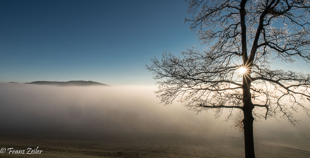 Von heute So bis inkl. Di ändert sich wenig am bestehenden Wettercharakter. Die Inversionslage dauert an (Beitragsbild von gestern Sa). Mit föhnig mildem Südwind dominiert die Sonne mit Wolkenfeldern in höheren Lagen und auf den Bergen, während in den Niederungen weiterhin Dauernebel mit Neigung zu leichtem Nieseln herrscht.