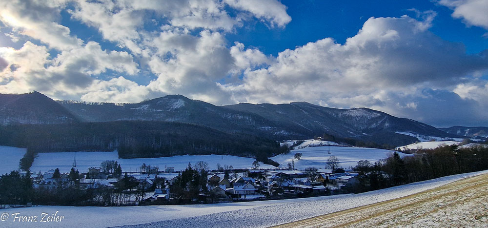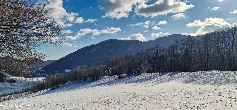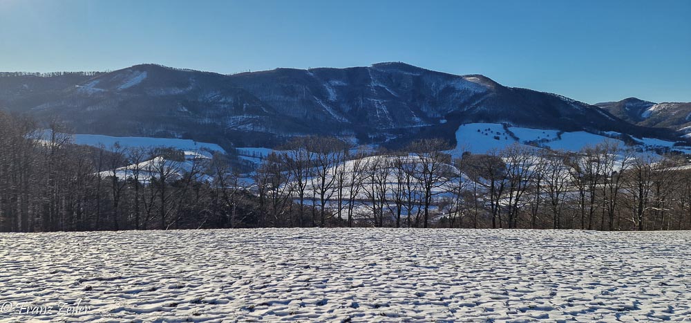 Nach dem Schneefall von Weihnachten folgte schwacher Hochdruckeinfluss bei gemäßigten winterlichen Temperaturen. Da die Luft recht trocken war, hielt die dünne Schneedecke auch südseitig der Sonne stand. Das Oberen Triestingtal zeigte überall ein winterliches Landschaftsbild und ermöglichte auch sonnseitig Wanderungen im unberührten Schnee.