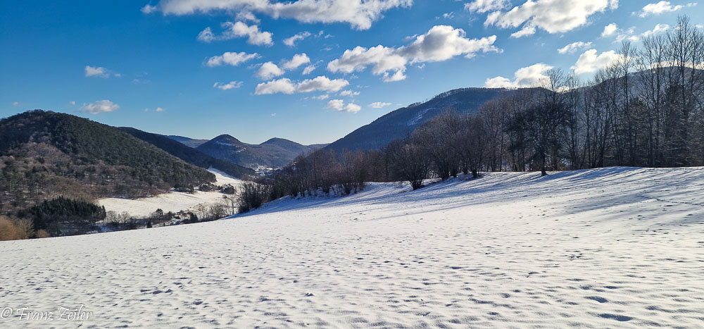 Nach dem Schneefall von Weihnachten folgte schwacher Hochdruckeinfluss bei gemäßigten winterlichen Temperaturen. Da die Luft recht trocken war, hielt die dünne Schneedecke auch südseitig der Sonne stand. Das Oberen Triestingtal zeigte überall ein winterliches Landschaftsbild und ermöglichte auch sonnseitig Wanderungen im unberührten Schnee.