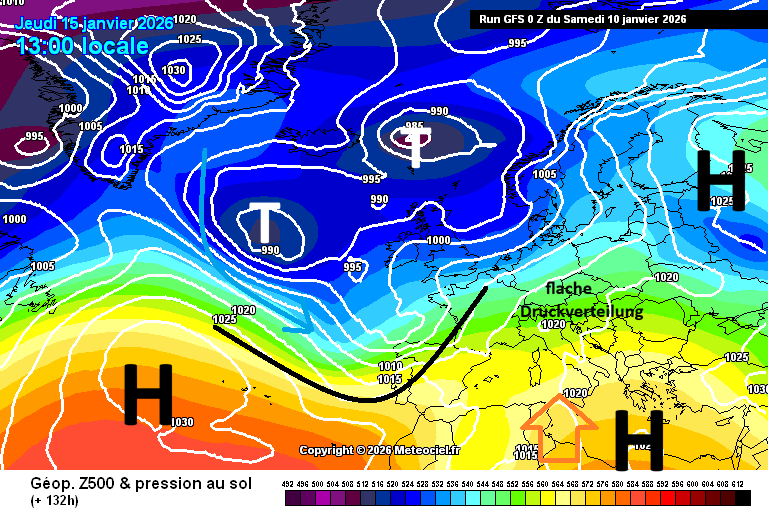 Druckverteilung und Zirkulationsmuster haben im weiteren Wochenverlauf sowohl nach dem amerikanische GFS, als auch nach dem europäische IFS, nachhaltigen Bestand.