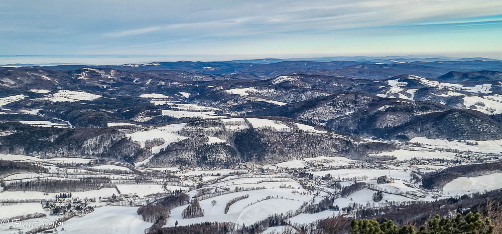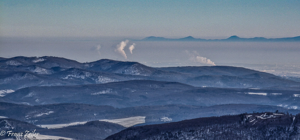 (Abluft der OMW und die Kleinen Karparten (Slowakei) ragen aus dem Kaltluftsee)