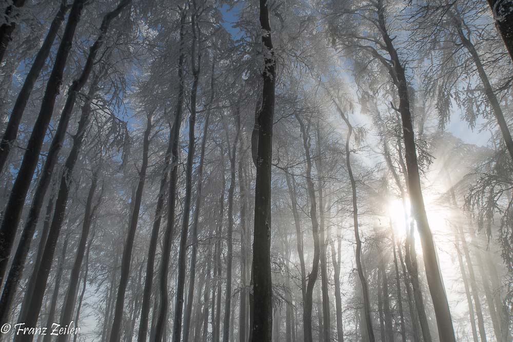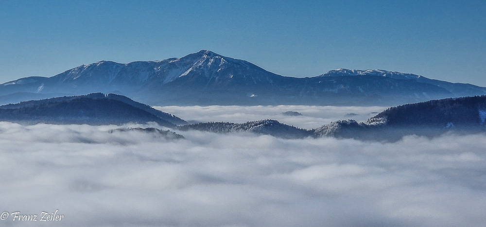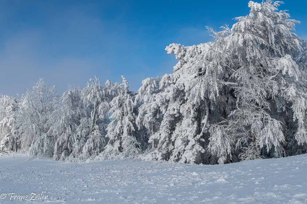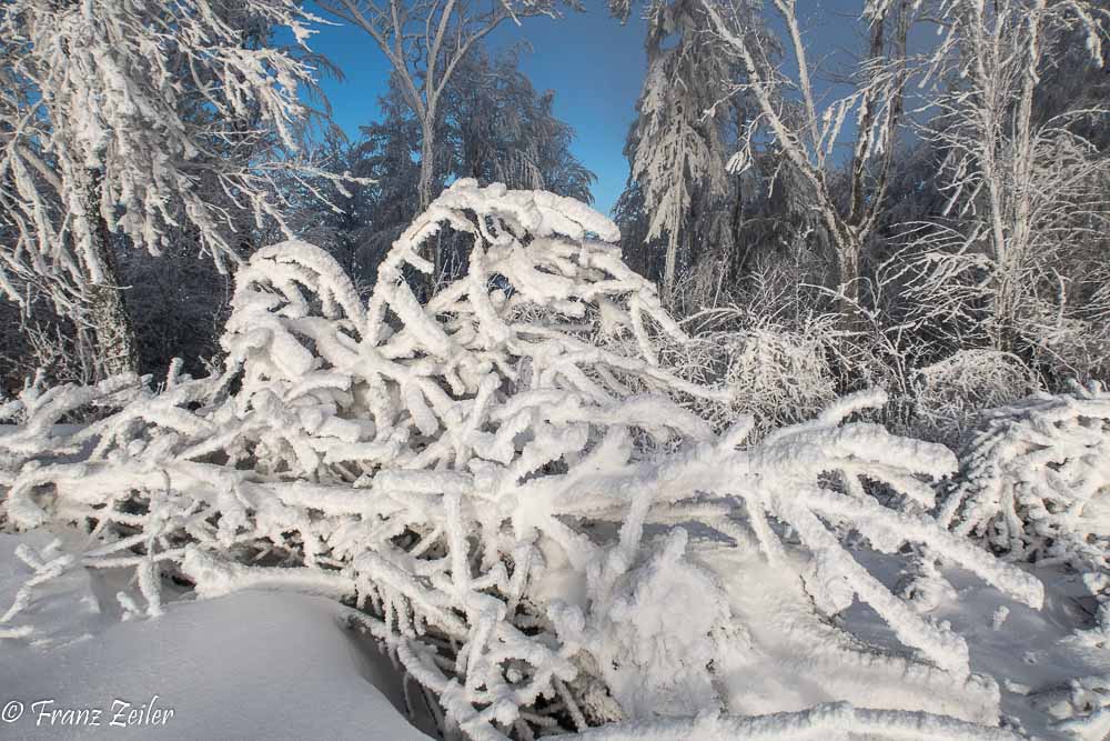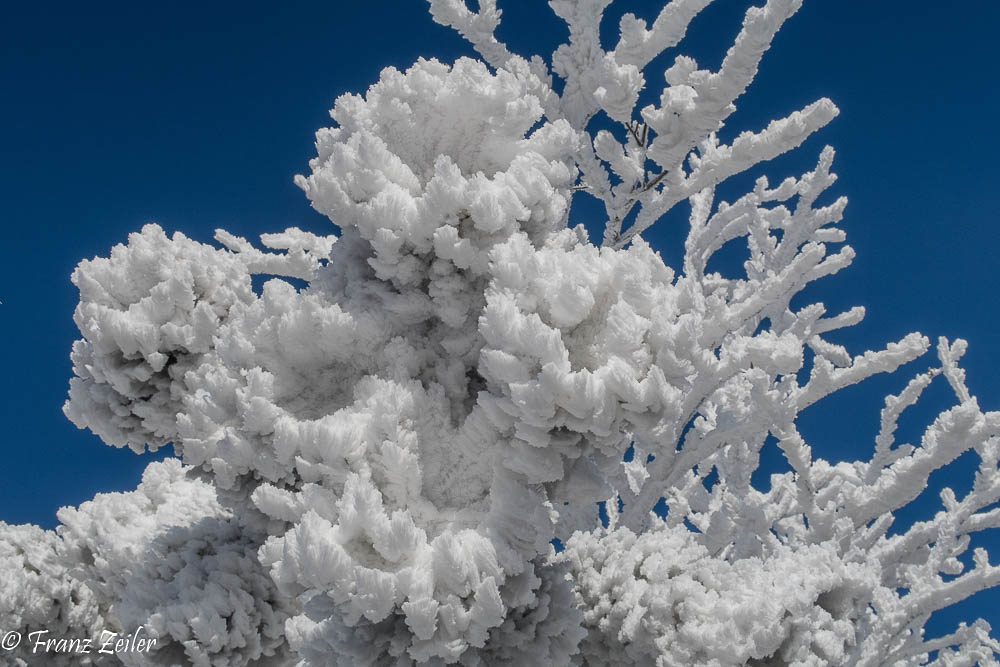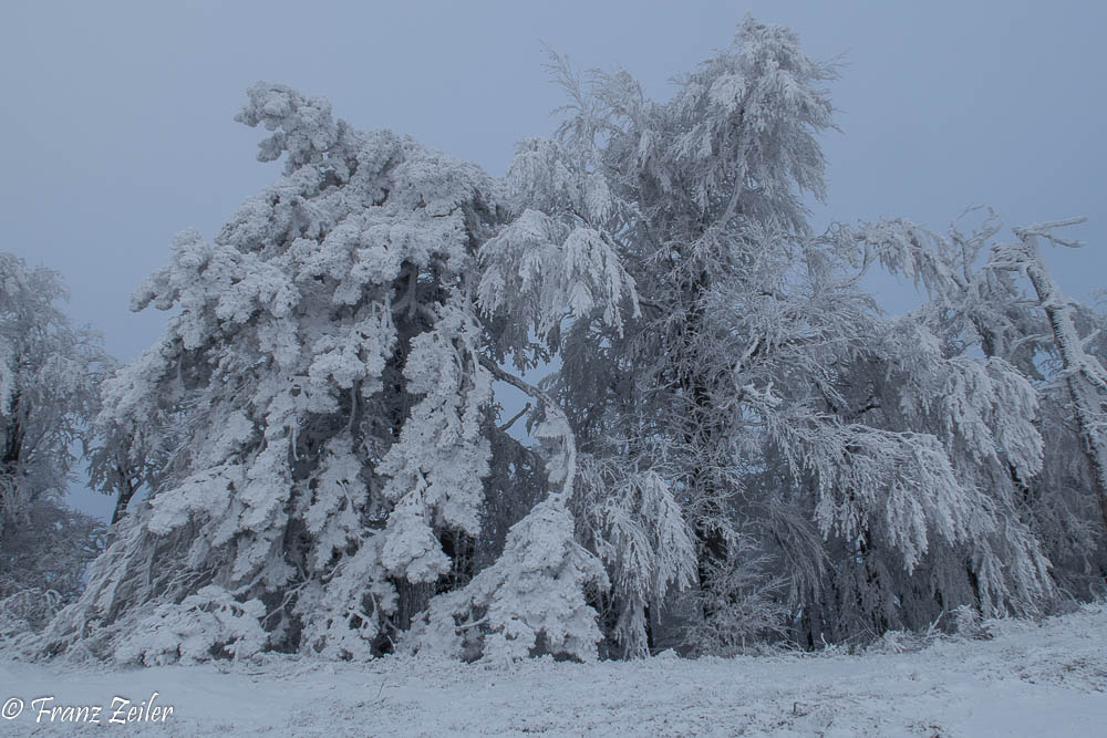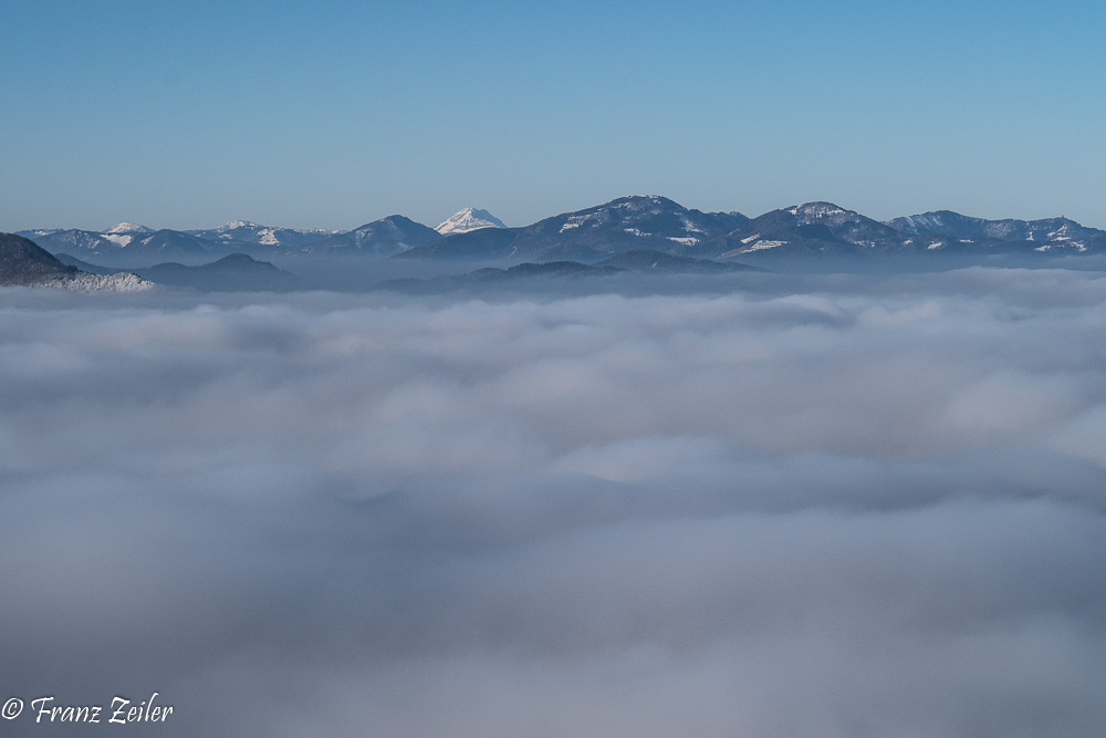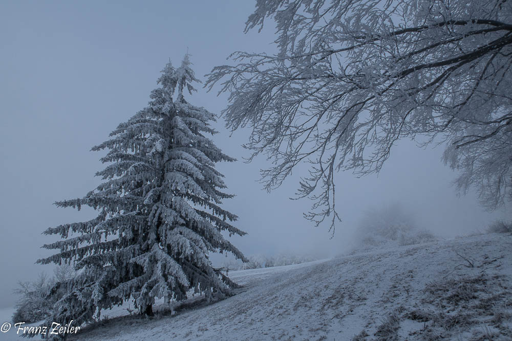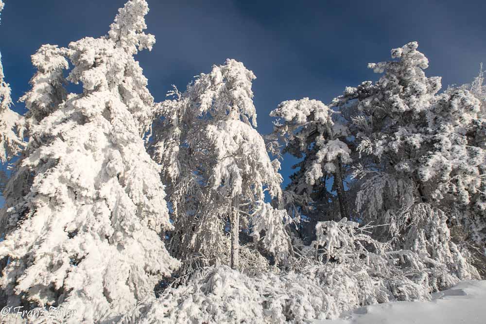 Wie in einer Endloseschleife wiederholte sich in den letzten Tagen (Mo – Fr) das Wetter. Zum Dauerfrost gesellte sich Nebel mit einer Obergrenze um 900m, in Höhenlagen von 700m-900m prächtiges winterliches Raueis, darüber war es sonnig bei bester Fernsicht und spürbar milder.