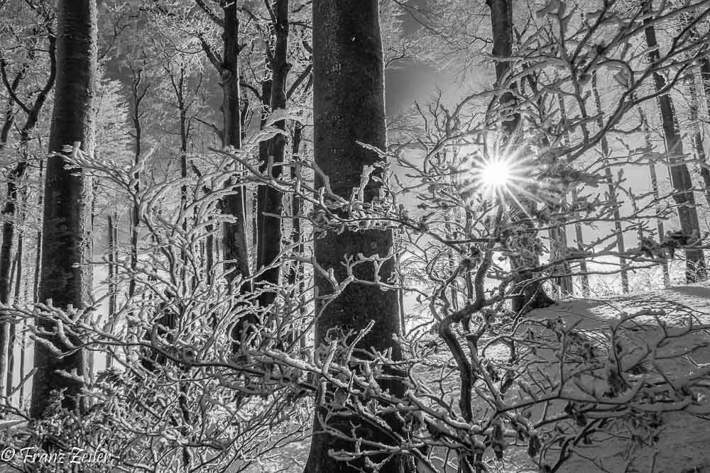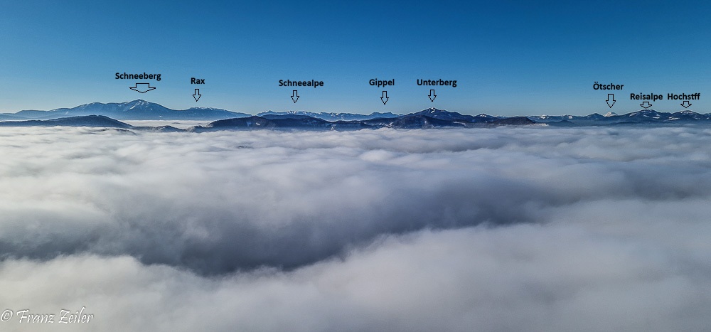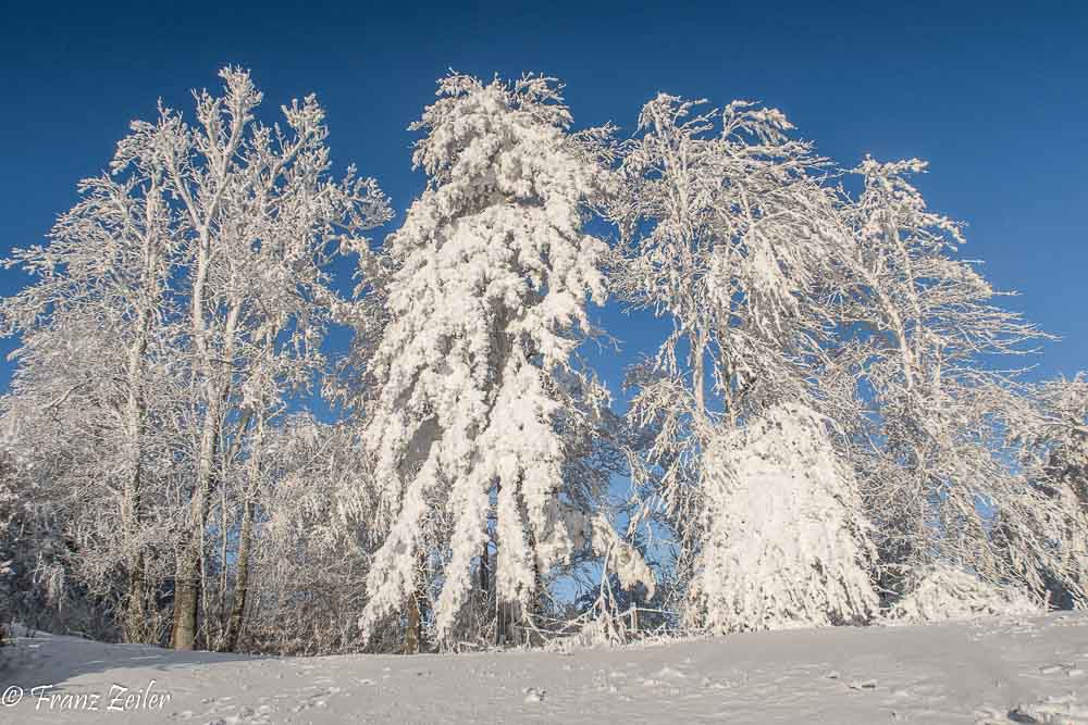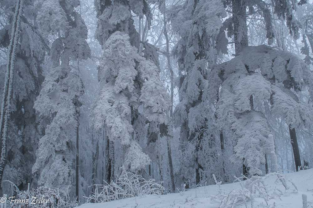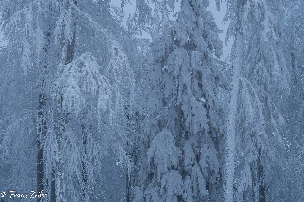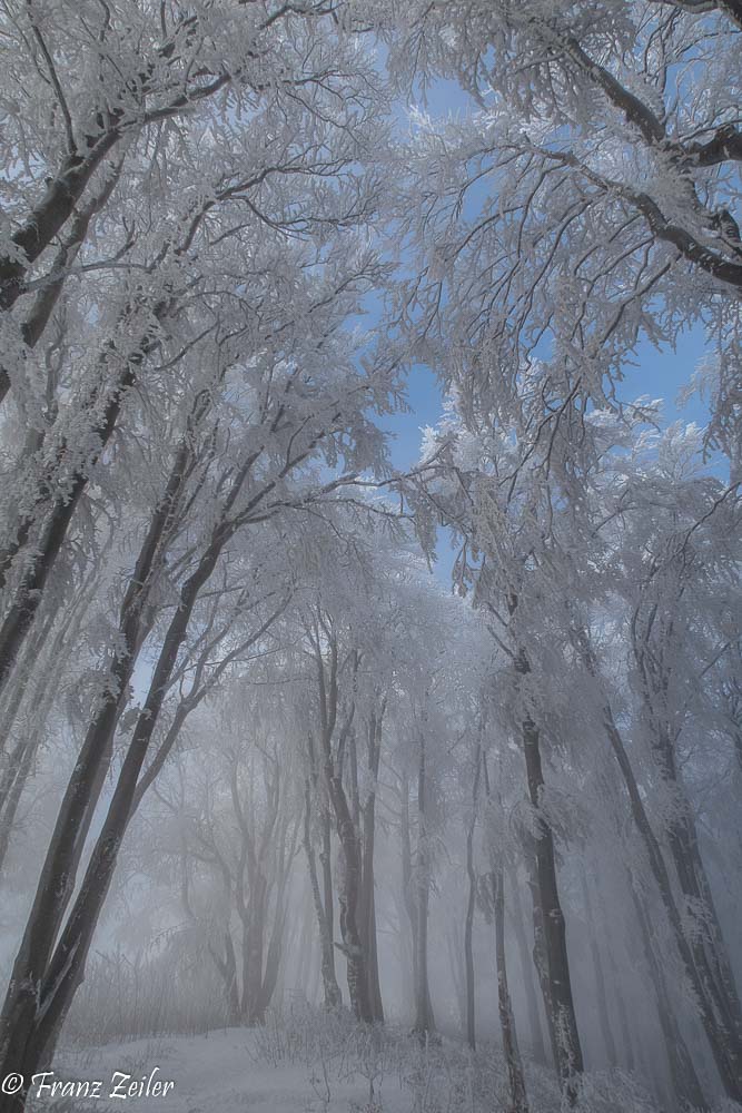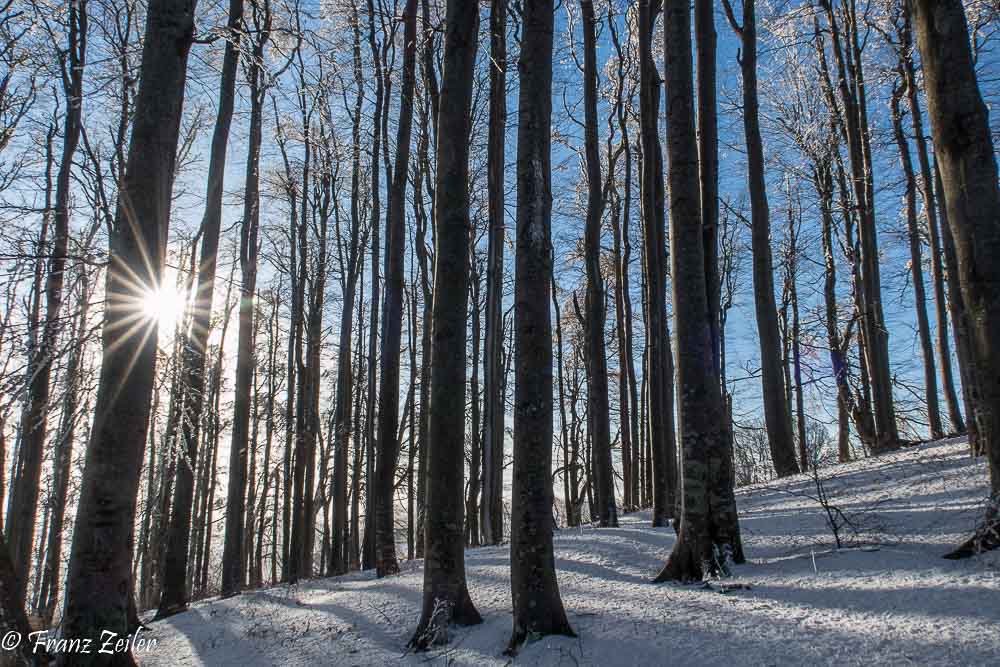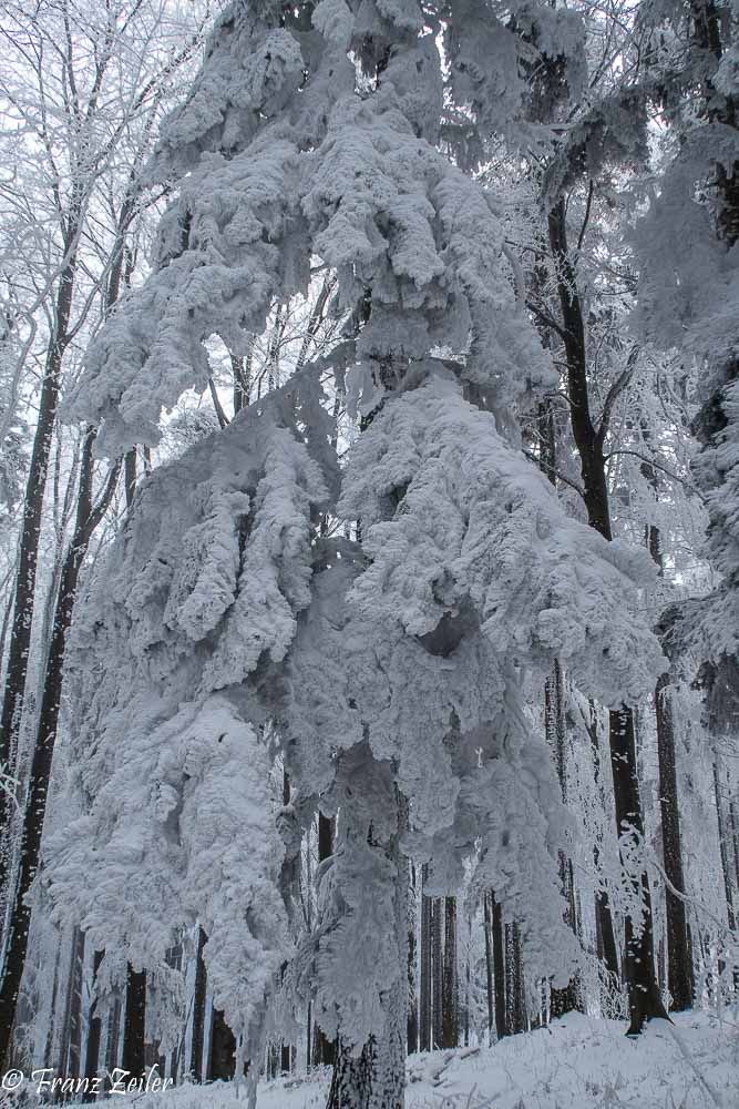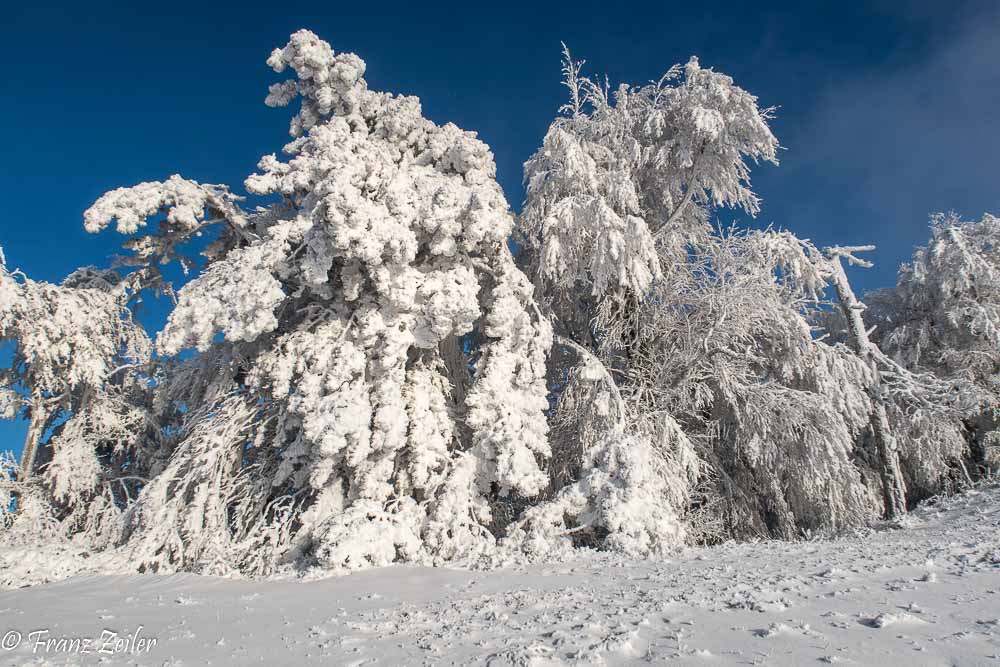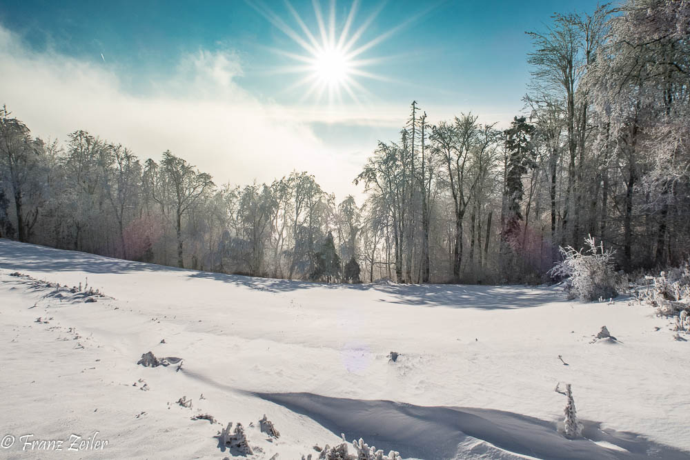 Wie in einer Endloseschleife wiederholte sich in den letzten Tagen (Mo – Fr) das Wetter. Zum Dauerfrost gesellte sich Nebel mit einer Obergrenze um 900m, in Höhenlagen von 700m-900m prächtiges winterliches Raueis, darüber war es sonnig bei bester Fernsicht und spürbar milder.