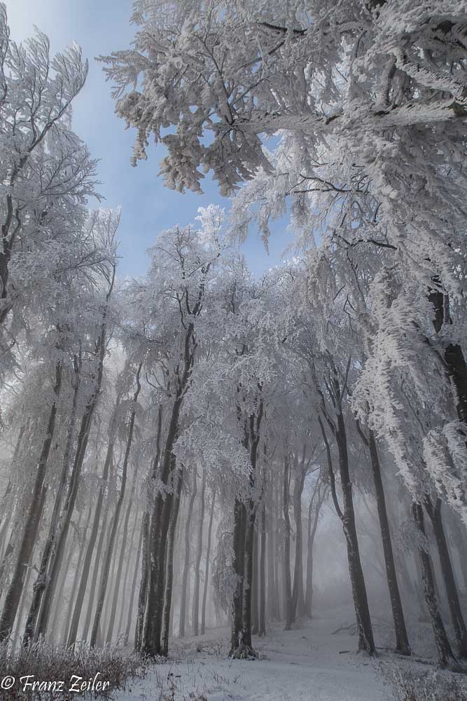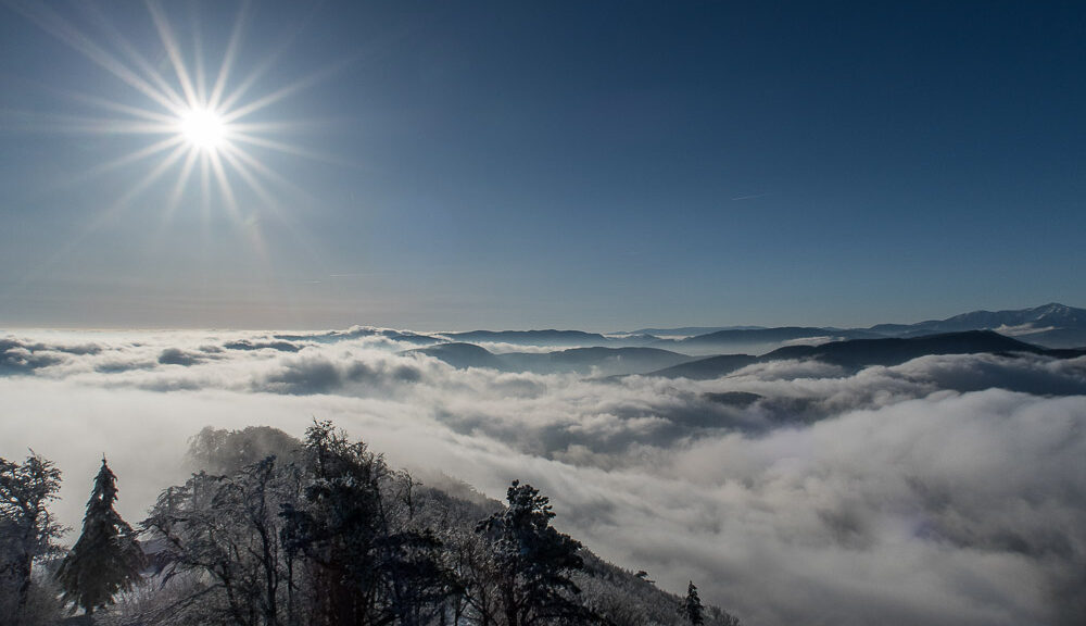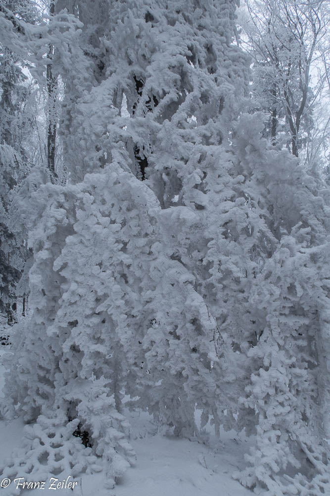 Wie in einer Endloseschleife wiederholte sich in den letzten Tagen (Mo – Fr) das Wetter. Zum Dauerfrost gesellte sich Nebel mit einer Obergrenze um 900m, in Höhenlagen von 700m-900m prächtiges winterliches Raueis, darüber war es sonnig bei bester Fernsicht und spürbar milder.
