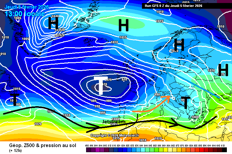 Derzeit liegt der Alpenraum zwischen einer Tiefdruckzone, die mit dem weit im S verlaufenden Jetstream vom NA bis ins Mittelmeer reicht und einer Hochdruckzone von OE über Skandinavien bis Grönland. Atlantische Fronten bleiben für den Großteil des Alpenraums blockiert und erreichen nur von S die Alpensüdseite: