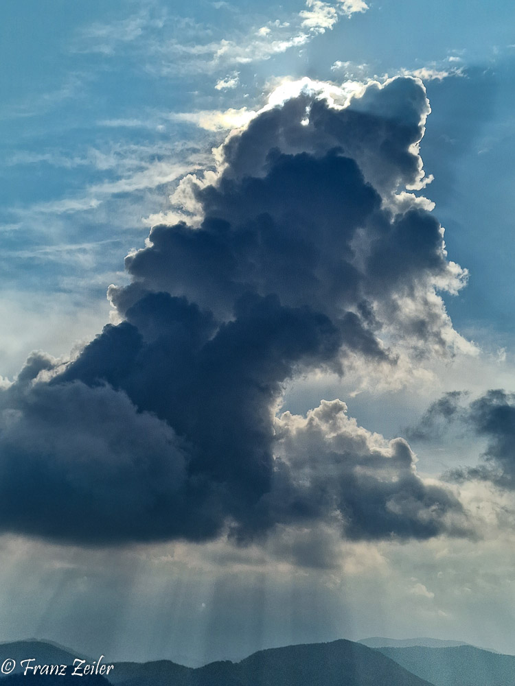 Zunehmende Zyklonalität im 500hPa Geopotentialfeld labilisiert nach derzeitgen Simulationen der Wettermodelle im Verlauf der kommenden Woche die Luftschichtung. Damit sind vor allem über dem Relief konvektive Effekte mit Quellwolkenbildung im Tagesgverlauf zu erwarten; vergleichbar mit dem schwachen Höhentiefeinfluss am gestrigen Mi: