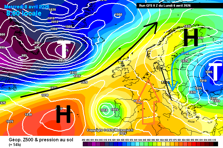 Nachfolgend exemplarisch Karten mit der simulierten Geopotential-/Druckstruktur für Mi und So vom aktuellen GFS-Modelllauf: