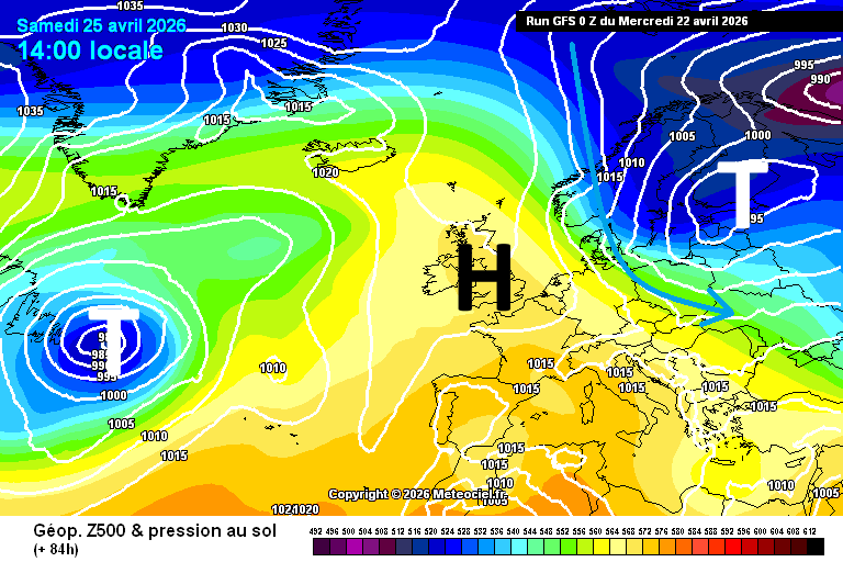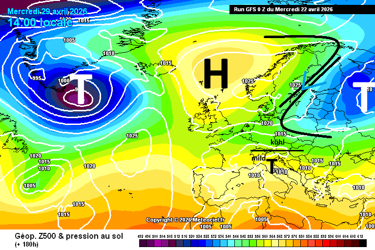 Modellübergreifend wird über den Monatswechsel hinaus die Fortsetzung der Atlantikblockade simuliert. Dabei soll sich das blockierende Hochdruckgebiet mit seinem Kern in den letzten Apriltagen im Seengebiet nördl. von Schottland positionieren und mit einem Keil nach Nordskandinavien erstrecken. Im Gegenzug dehnt sich ein Trog des Tiefs über Russland in Richtung ME aus. Aus S drückt gleichzeitig feuchtmilde Luft gegen die Alpen: